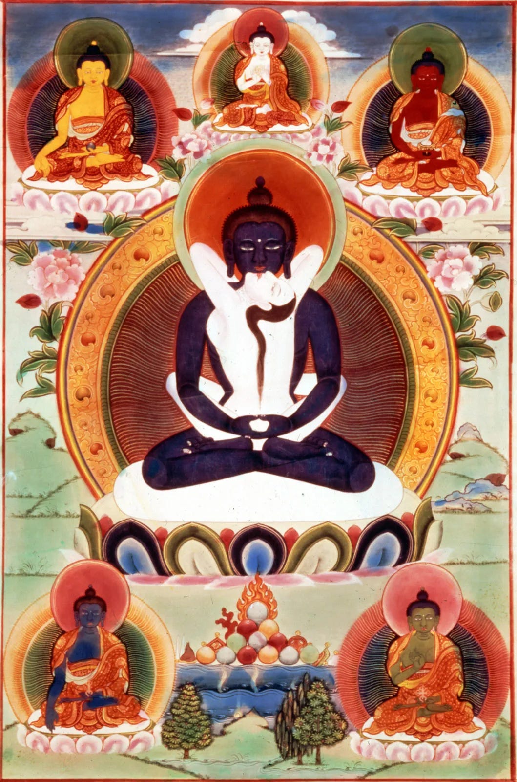 I’m reminded of the Tibetan Buddhist image of the Yab Yum, in which an enlightened Buddha sits with his Shakti, a female figure representative of pure energy, on his lap, but she faces him, the pair in divine union. The spiritual seeker, and then enlightened one, turns their energy completely inward, away from the distractions of the world, and is thereby able to come into a state of one-ness with that energy. But that’s never meant to be a frozen state, the end of the hero’s journey; we must be able to go back and forth. We turn the energy away from the world, towards ourselves, in order again to drink from the fountain of peace and clarity within us, only to turn that energy outwards once more, so that our actions are suffused with the wisdom gained thereby.